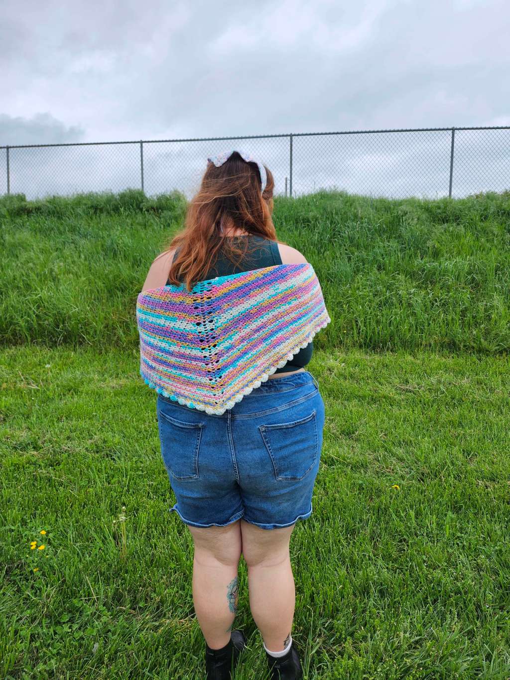 I have officially finished the Omar Wrap from TL Yarn Crafts using Lion Brand’s Mandala Baby in Acre Woods. Let’s talk about it!