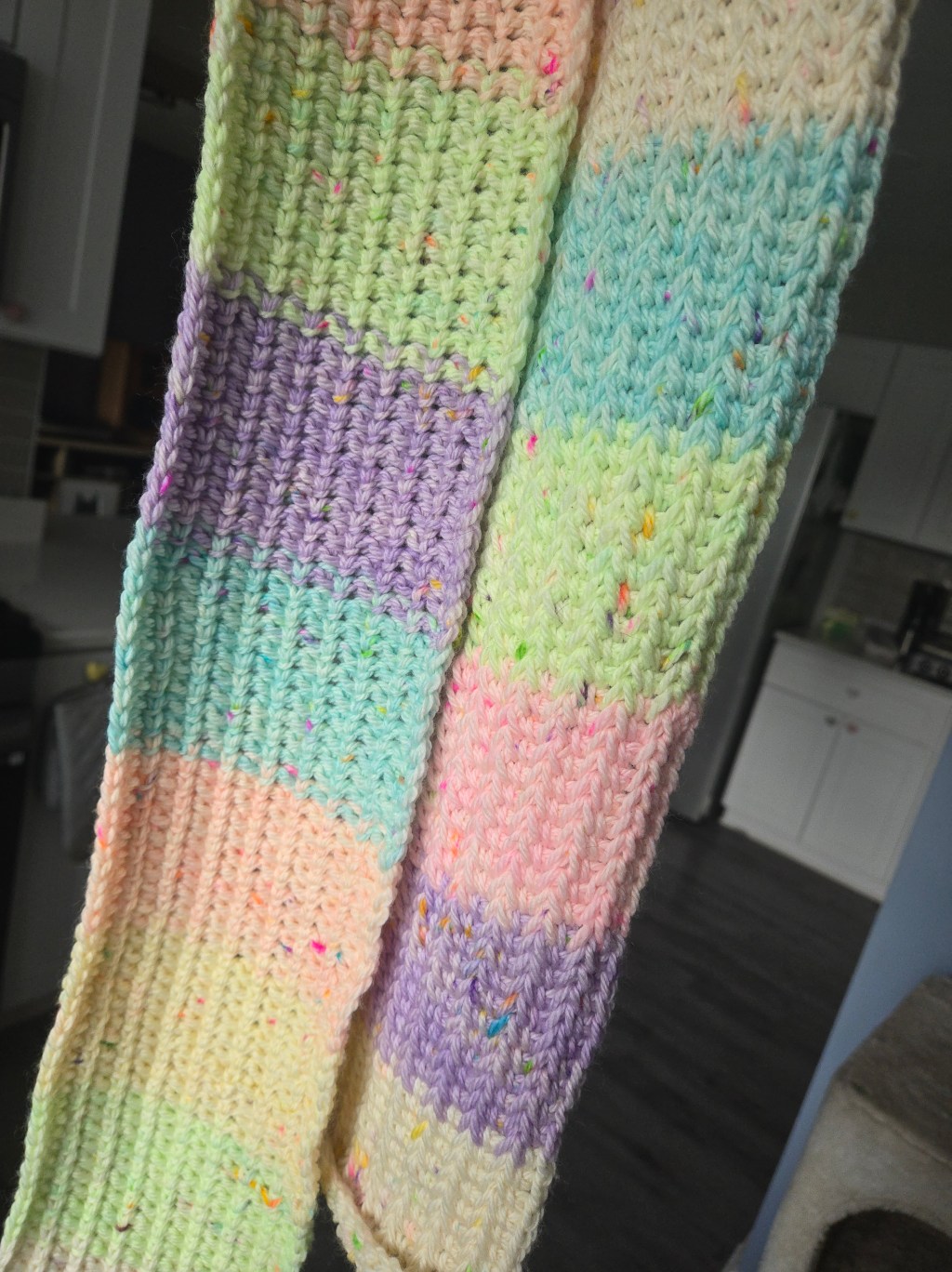 Well…. after a long hiatus, I’ve returned with two stories of success. Let’s start with the smaller, but still super fun update. I tried Tunisian Crochet for the first time! I made the Rainbow Ridge Scarf by TL YarnCrafts. Isn’t it beautiful?